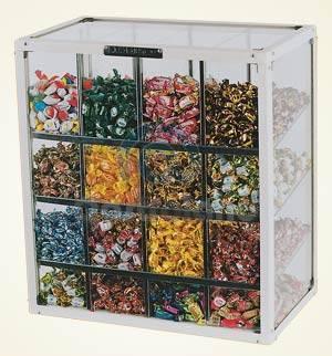 | Caramelera 18 Divisiones |  | Estructura de aluminio esmaltado color marfil. Totalmente de vidrio sobre burletes de goma. Puertas corredizas con rulemanes. Medidas: 95x30x62cm. |