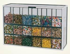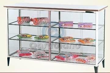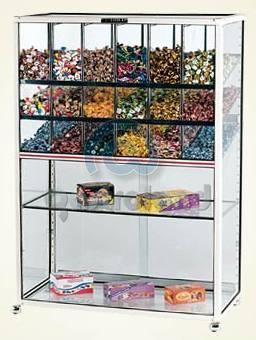 | Caramelera c/ Vitrina 18 Divisiones |  | 2 estantes regulables. Estructura de aluminio esmaltado color marfil. Totalmente de vidrio sobre burletes de goma. Estantes regulables con terminación ... |